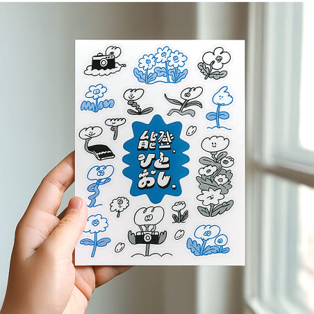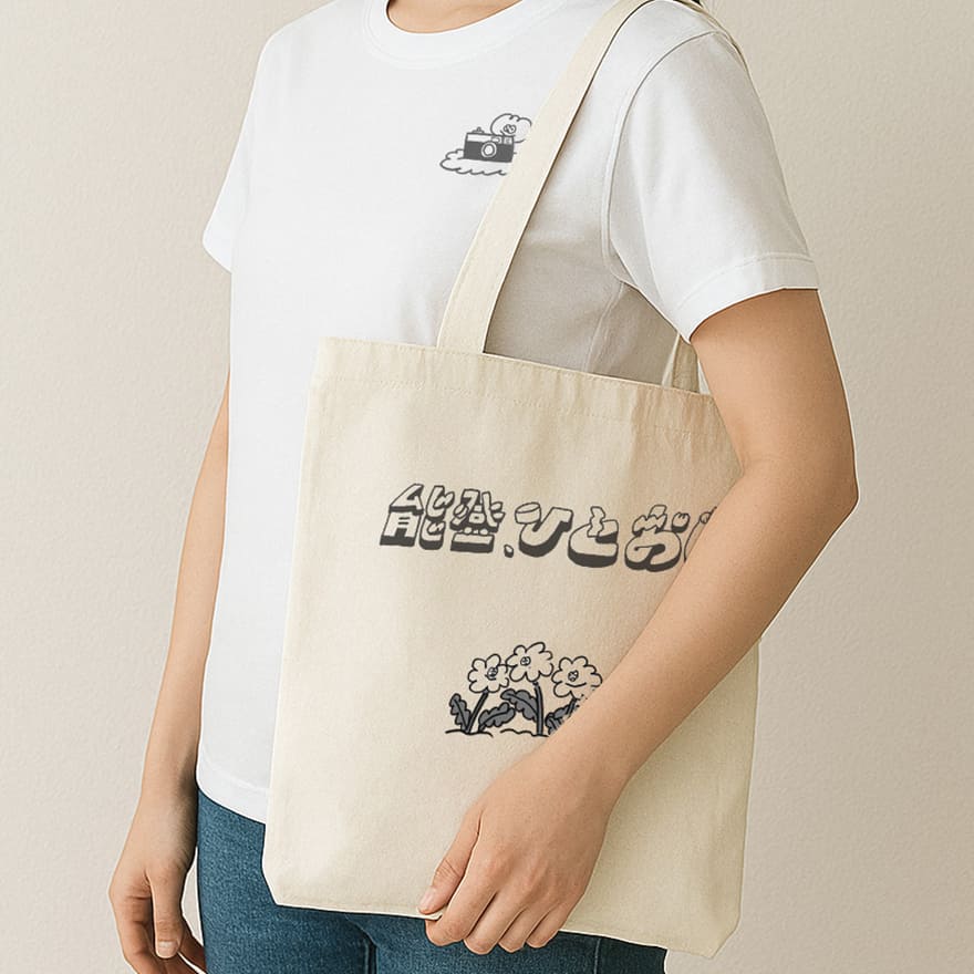 写真集で使われている「ひとおし花」は、写真集の挿絵として登場している、饅頭ベリーマッチさん描き下ろしキャラクター!お手持ちのTシャツやトートバッグなどに手刷りプリントしましょう!